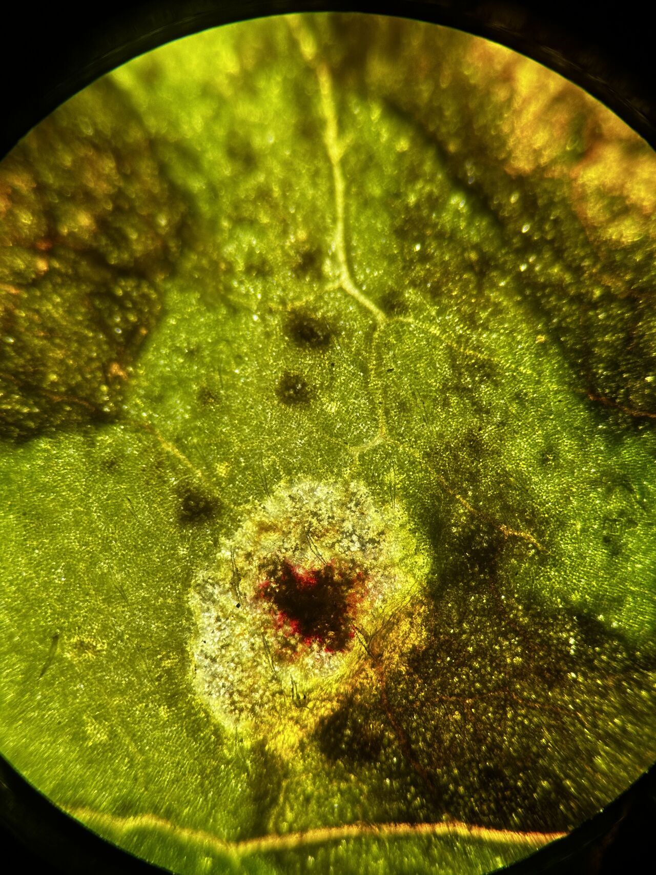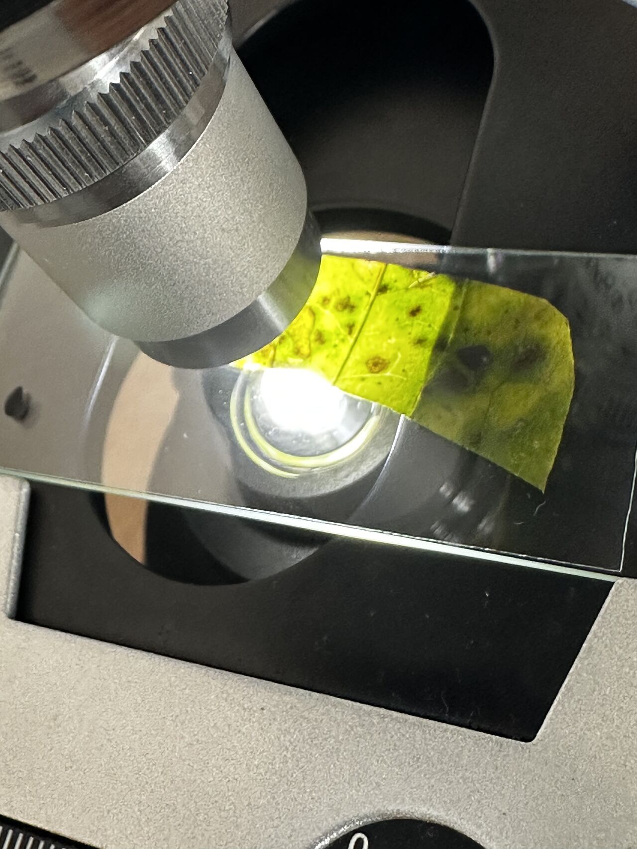 My daughter brought home a leaf from daycare. Speckled, she said. She wanted to look at it under my “telescope.”
